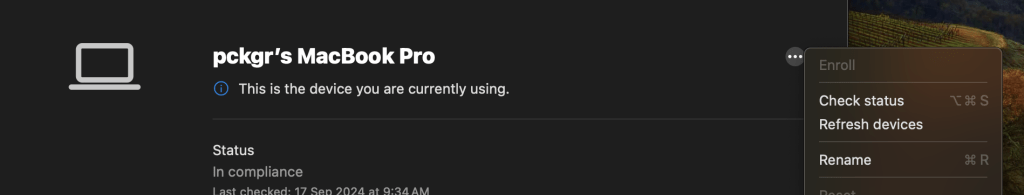 Once the application has been assigned to a device, the application can then install. To speed up the process, you can manually have the device check in via the Company Portal. Simply, click the “Check Status” button”
