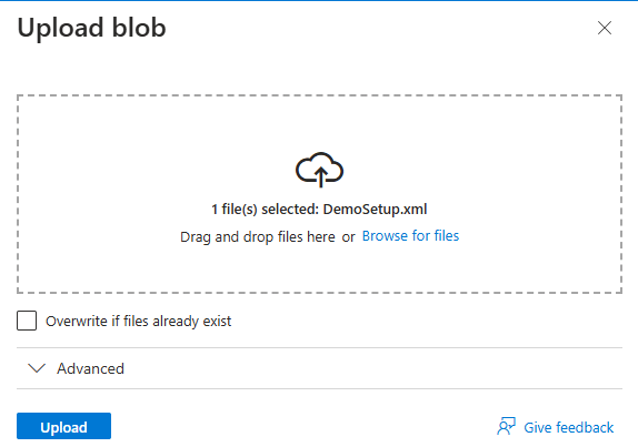 - Upload the XML file to the container.