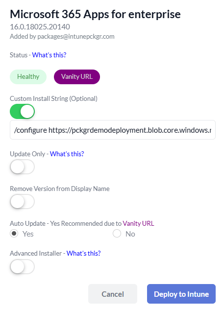 - Deploying the App with a Custom Install String via Pckgr
