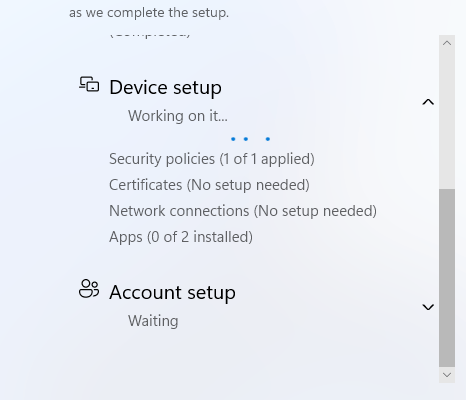 After completing the setup, I wanted to show a demo of the apps installing during Autopilot. Here you can see the package has started installing during the Autopilot ESP. The reason it shows 2 applications is because the Winget Pre-Install also needs to install.