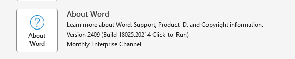 We also checked the Account Settings in Word to confirm the Update Channel is set to Monthly Enterprise.