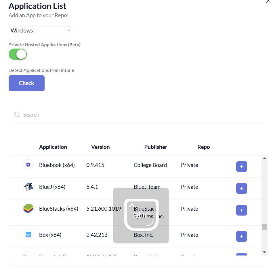 Since the Pilot Group feature is exclusive to private repository apps, start by selecting an application from the Pckgr Application Library.