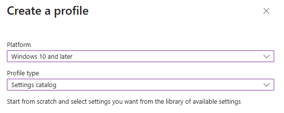 Start by heading to the Microsoft Intune Portal and creating a new Windows configuration profile using the Settings Catalog.