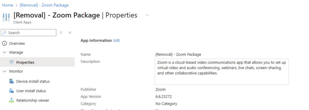 To make the intent of this package crystal clear, we set the display name to: [Removal] – Zoom Package