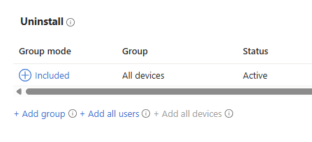 We then go into the Assignments tab and set the app to Uninstall for the All Devices group.