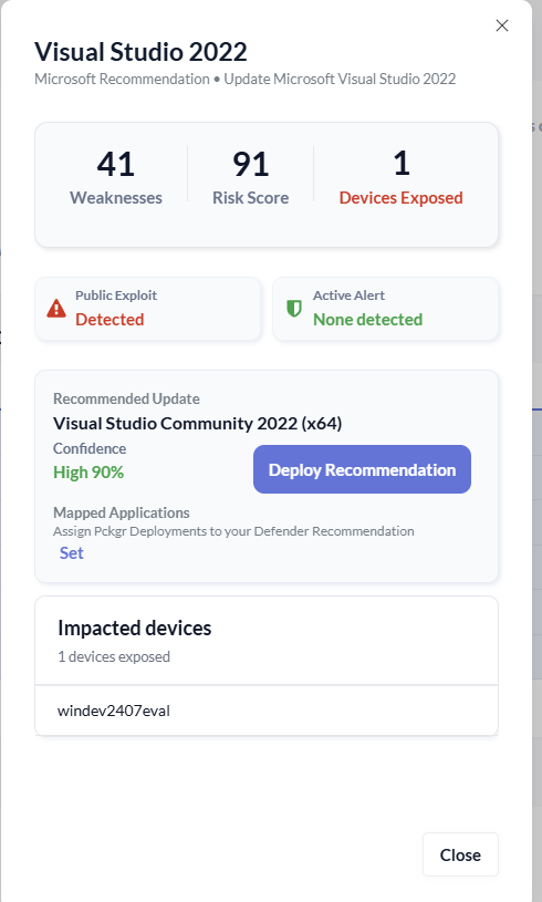 In this example, Visual Studio 2022 is flagged with a public exploit, which makes remediation even more urgent.