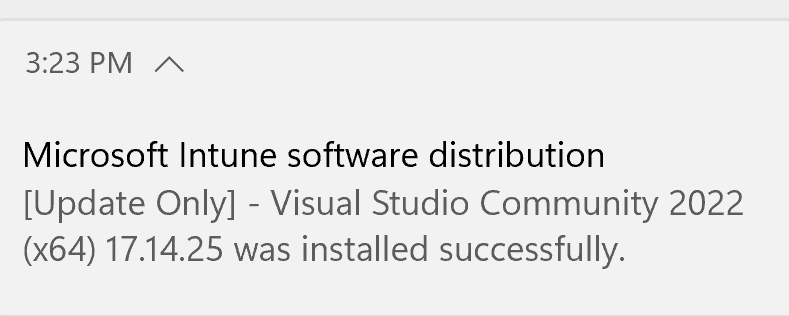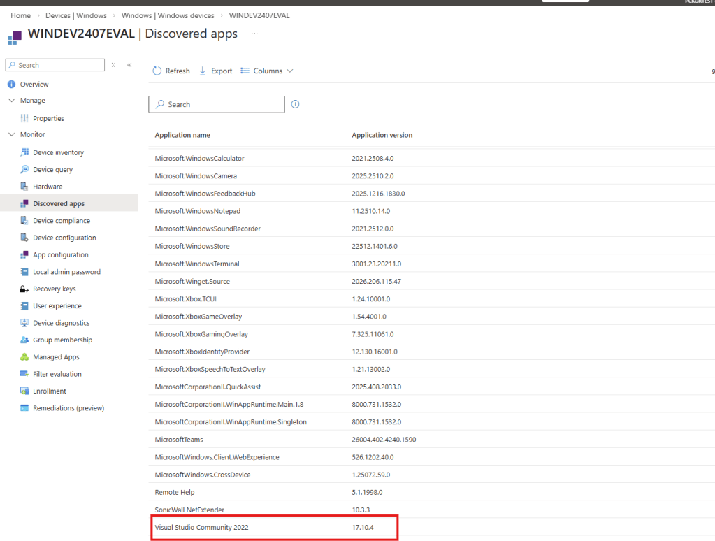 Looking at the detected applications in Intune, we can see that Visual Studio Community 2022 is indeed installed on the device.