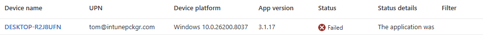 Checking the Intune admin center confirmed what we were seeing on the endpoints: